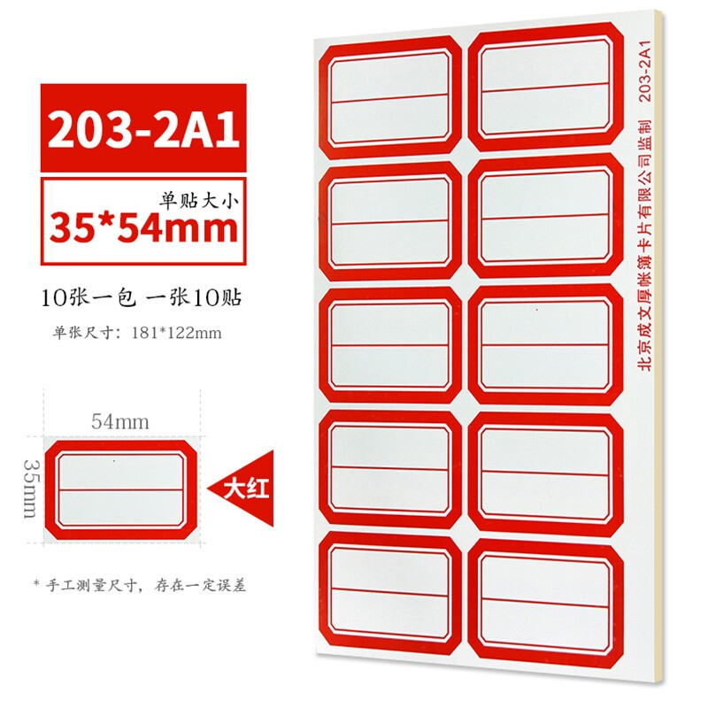 成文厚 口取紙 不干膠標簽紙 口曲紙 10張/包(203-3A1 紅色)