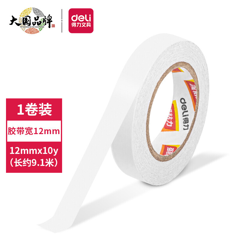 得力(deli)高粘性棉紙雙面膠帶 12mm*10y(9.1m) 單卷裝 創(chuàng)意小卷芯 30435