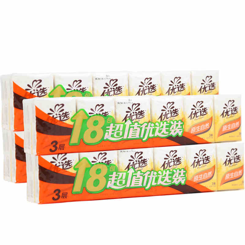 心相印(Mind Act Upon Mind) C2118 優(yōu)選系列原生自然3層壓花紙巾迷你手帕紙面巾紙18包/條
