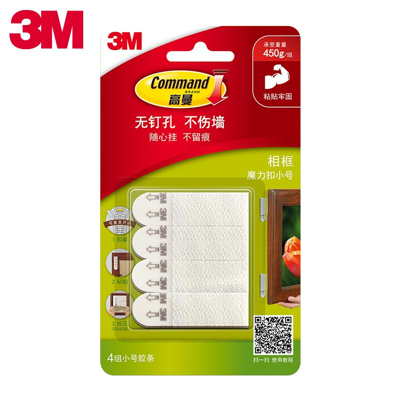 3M高曼魔力扣無痕掛鉤粘 免打孔粘膠照片墻相片婚紗照掛 浴室臥室客廳掛鉤 無痕魔力扣小號4組