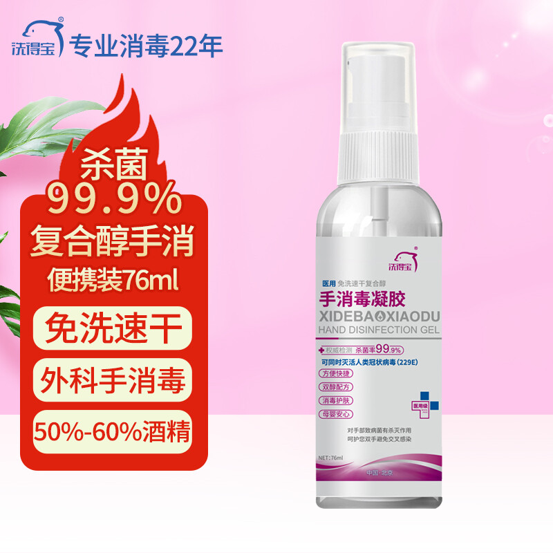 洗得寶 醫(yī)用酒精免洗洗手液 免洗手消毒凝膠手消毒液76ml