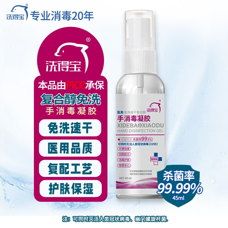 洗得寶 復(fù)合醇免洗手消毒凝膠45ml 45ml/瓶