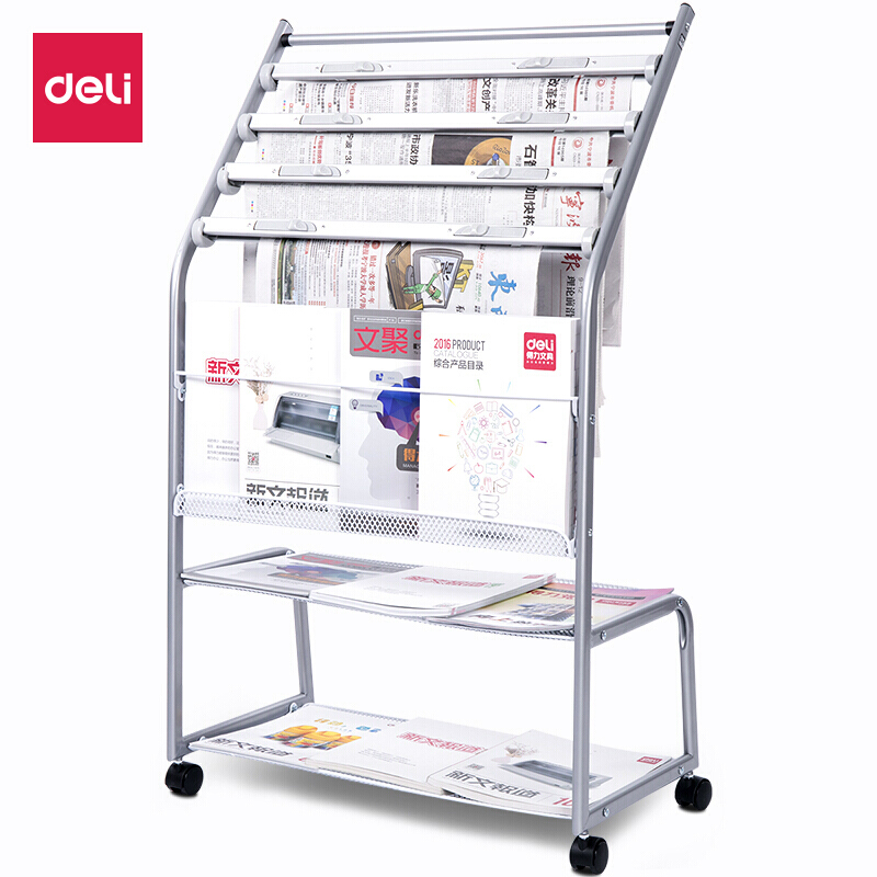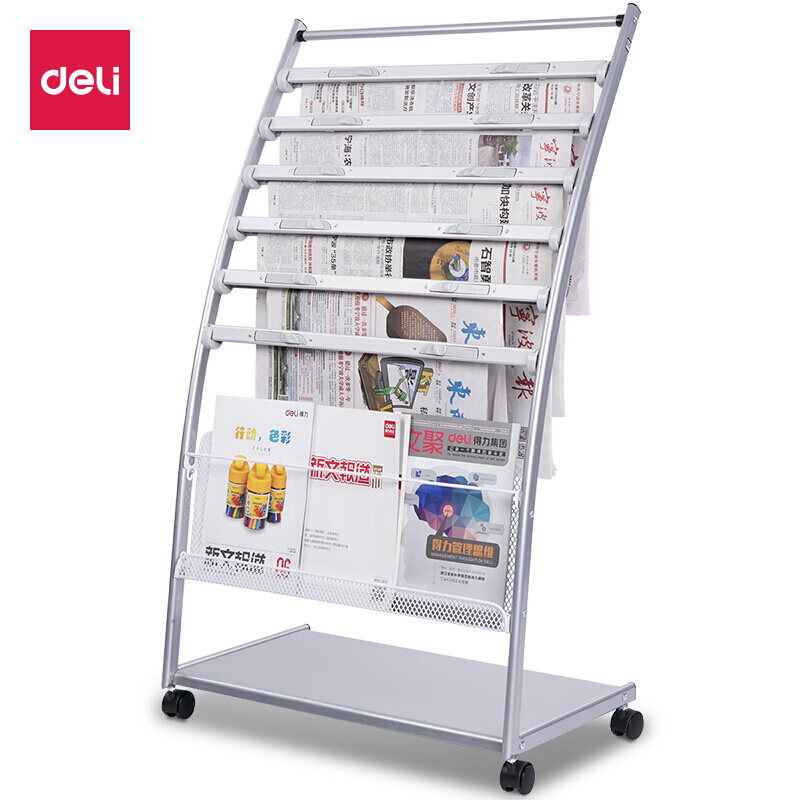 得力(deli) 9302 六層鋁合金夾條報(bào)紙架報(bào)刊架 雜志展示架635*360*875mm