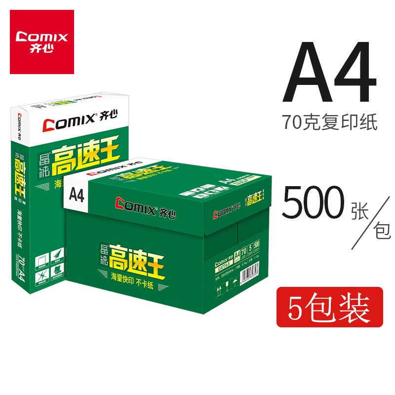 齊心(COMIX)晶純高速王打印紙復(fù)印紙辦公用品 A4 70g 整箱(2000張)C4774-5