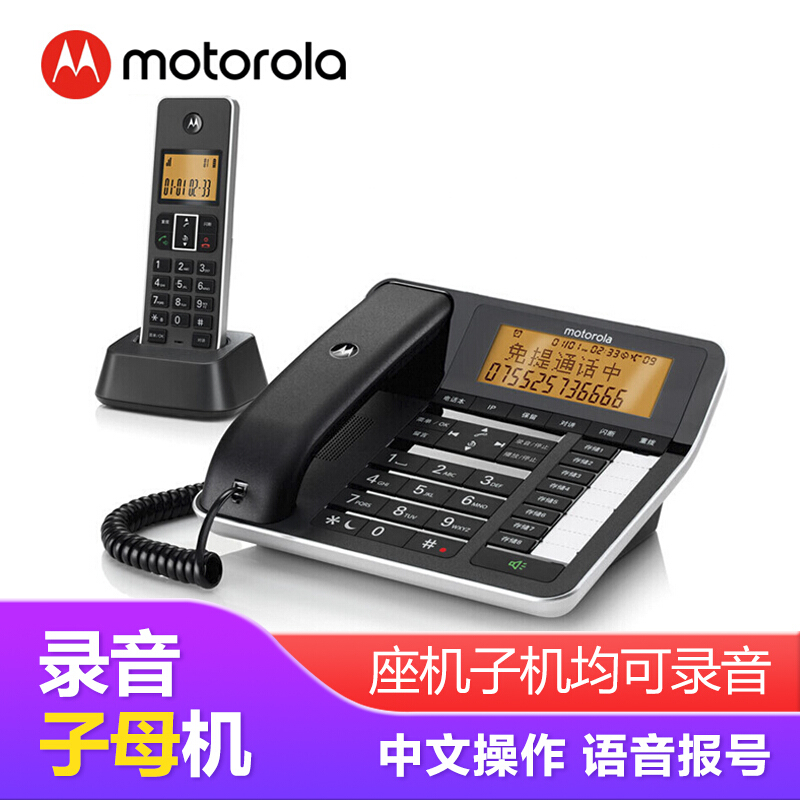 摩托羅拉(Motorola) C7501RC 智能插卡錄音子母機高端商務(wù)辦公客服電話呼叫中心來電語音報號中文橙色背光固定座機
