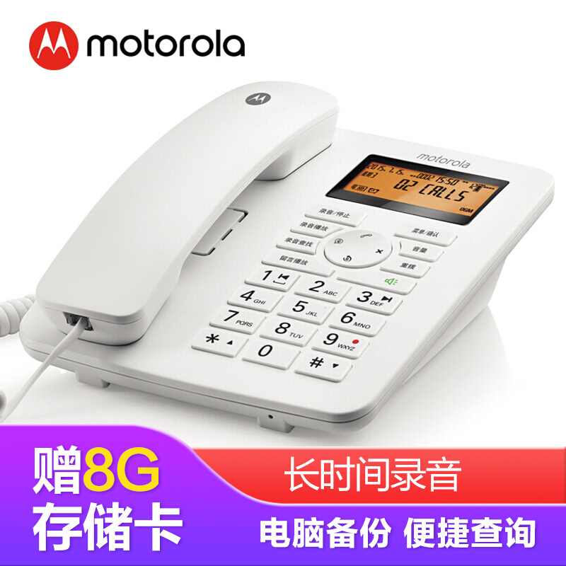 摩托羅拉(Motorola) CT111C 智能自動/手動插卡錄音電話機座機商務(wù)客服電話呼叫中心家用辦公固定座機 (白色)