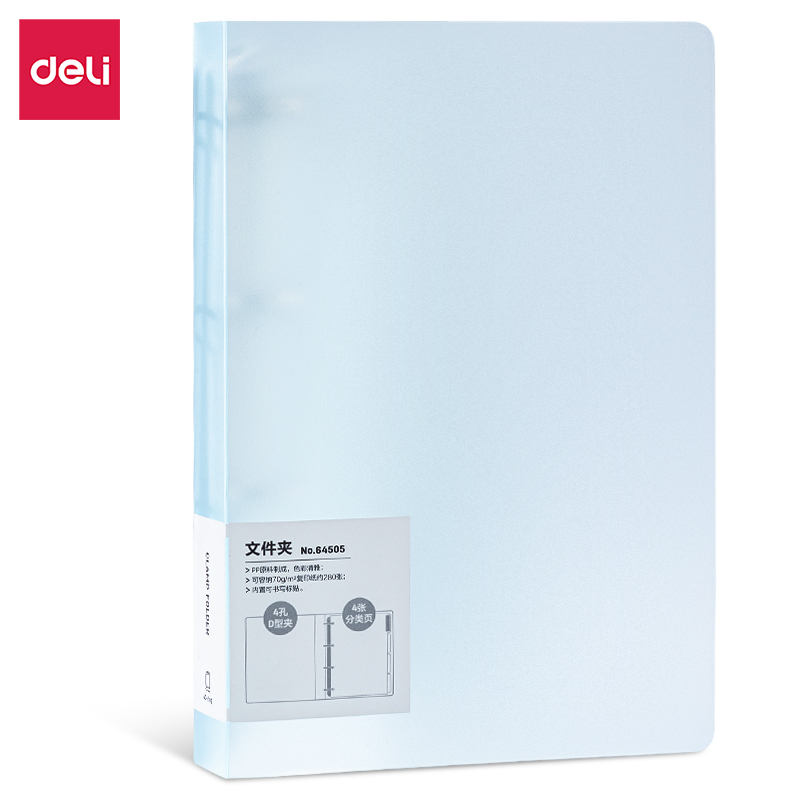 得力(deli)4孔PP文件夾 試卷資料夾 詩(shī)朗誦簽約夾板 藍(lán)色64505